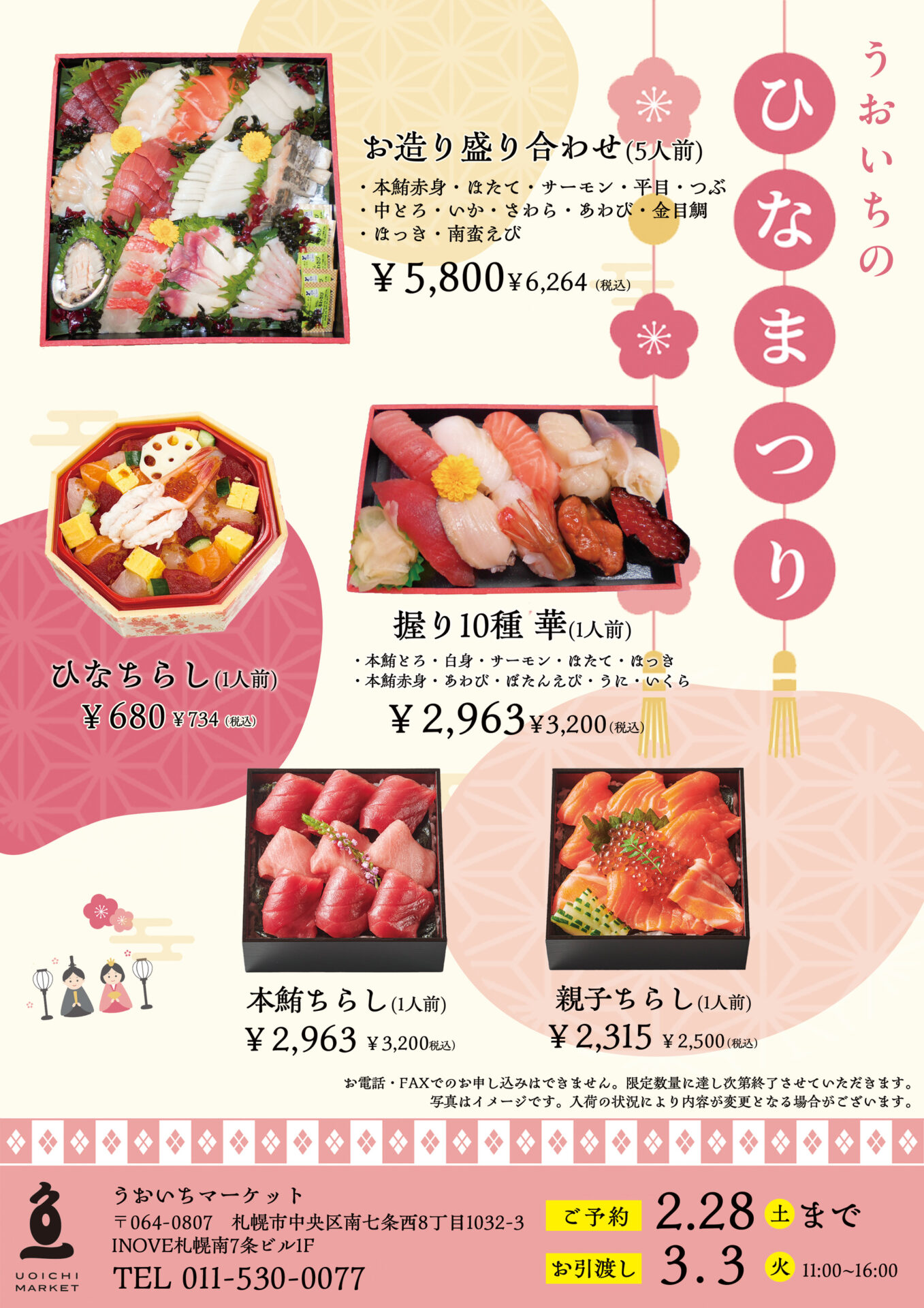 うおいちマーケットの恵方巻きは厳選素材をふんだんに使った特製太巻きです。ご予約特典は10%引き 予約...